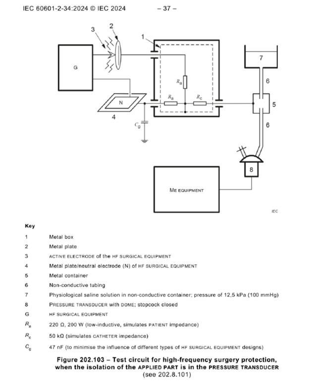 2.TJT9706234202103有创血压监护高频手术耦合网络位于《IEC60601-2-34 Particular requirements for the basic safety and essential performance of invasive blood pressure monitoring equipment》图202.104中 5所示